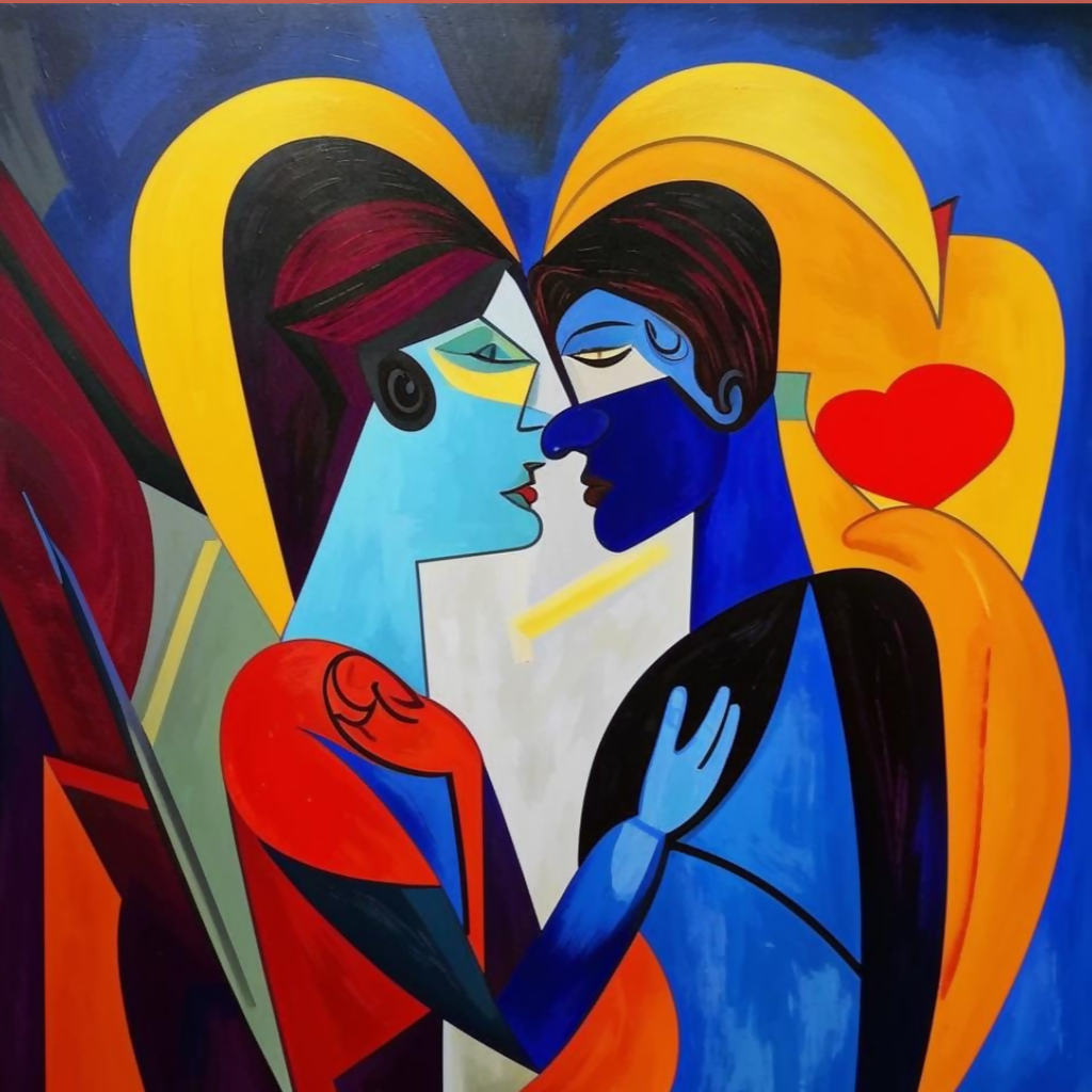 Cubist Love – Abstract Lovers Embrace’ is a striking AI-generated romantic artwork inspired by modern cubism. With bold colors, geometric elegance, and emotional intimacy, this piece brings passion and modern art into any living space. A powerful statement for lovers of abstract expression.