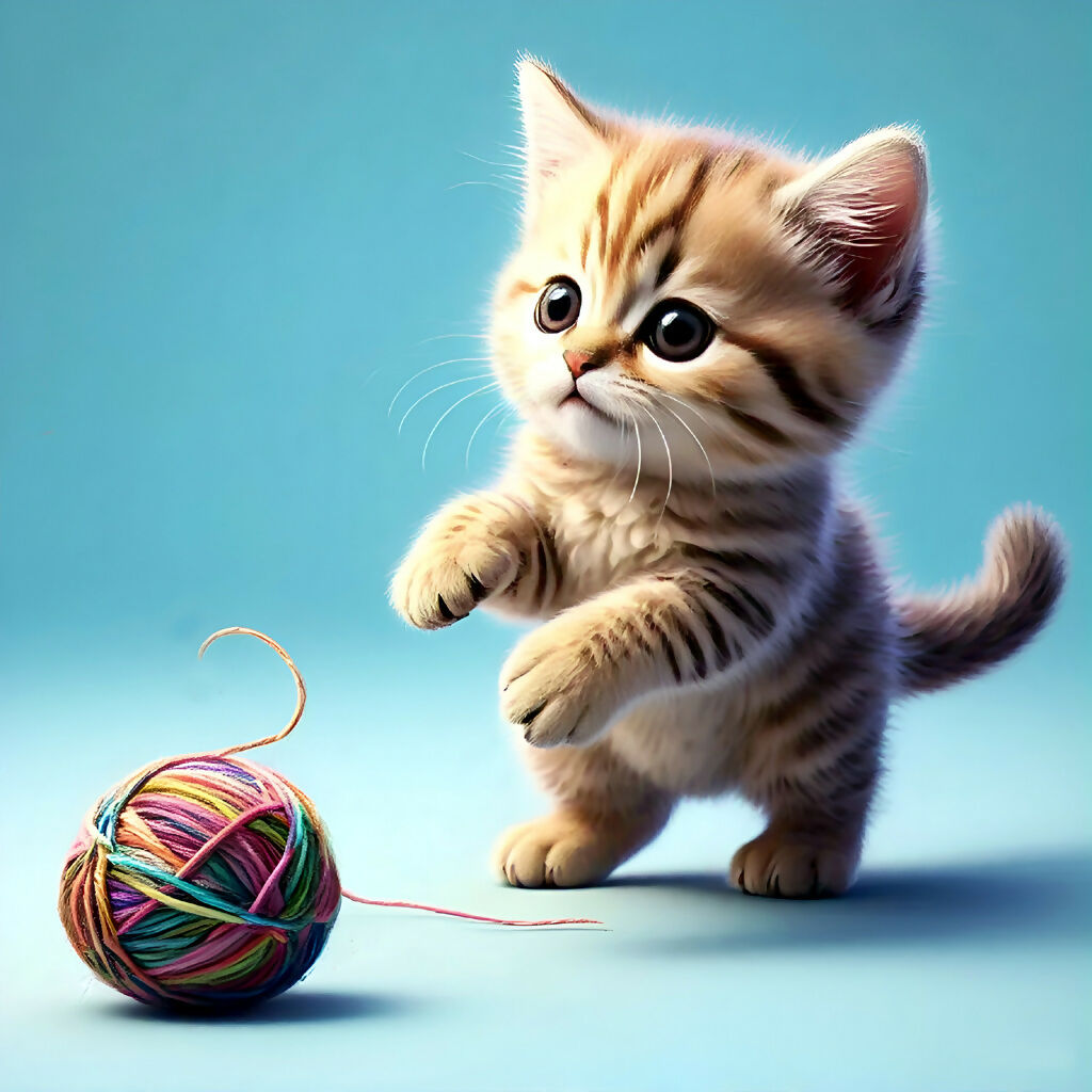 A burst of innocence and color, "Curious Whiskers" captures the playful spirit of a light brown tabby kitten mesmerized by a rainbow-hued ball of yarn. Set against a calming blue background, this AI-generated artwork evokes the joy of discovery and the charm of everyday moments. Inspired by the universal bond between humans and pets, this piece celebrates the curiosity that drives both art and life. Whether you're a cat lover or a fan of vibrant compositions, this artwork brings warmth and whimsy to any space.