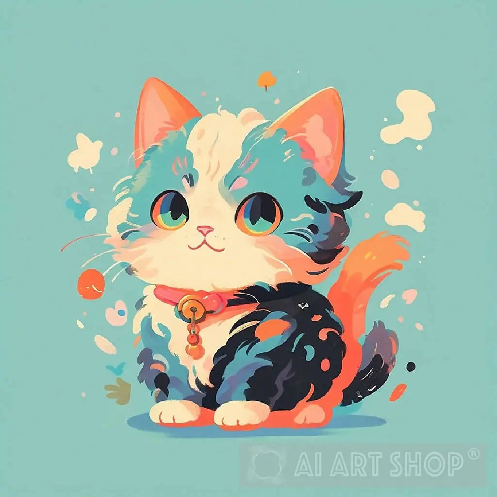 cute cat, AI-inspired character, Instagram icon, deformation, Akira Toriyama, vintage colors, minimalist, simple logo cat, AI-inspired character, Instagram icon, deformation, Akira Toriyama, vintage colors, minimalist, simple logo