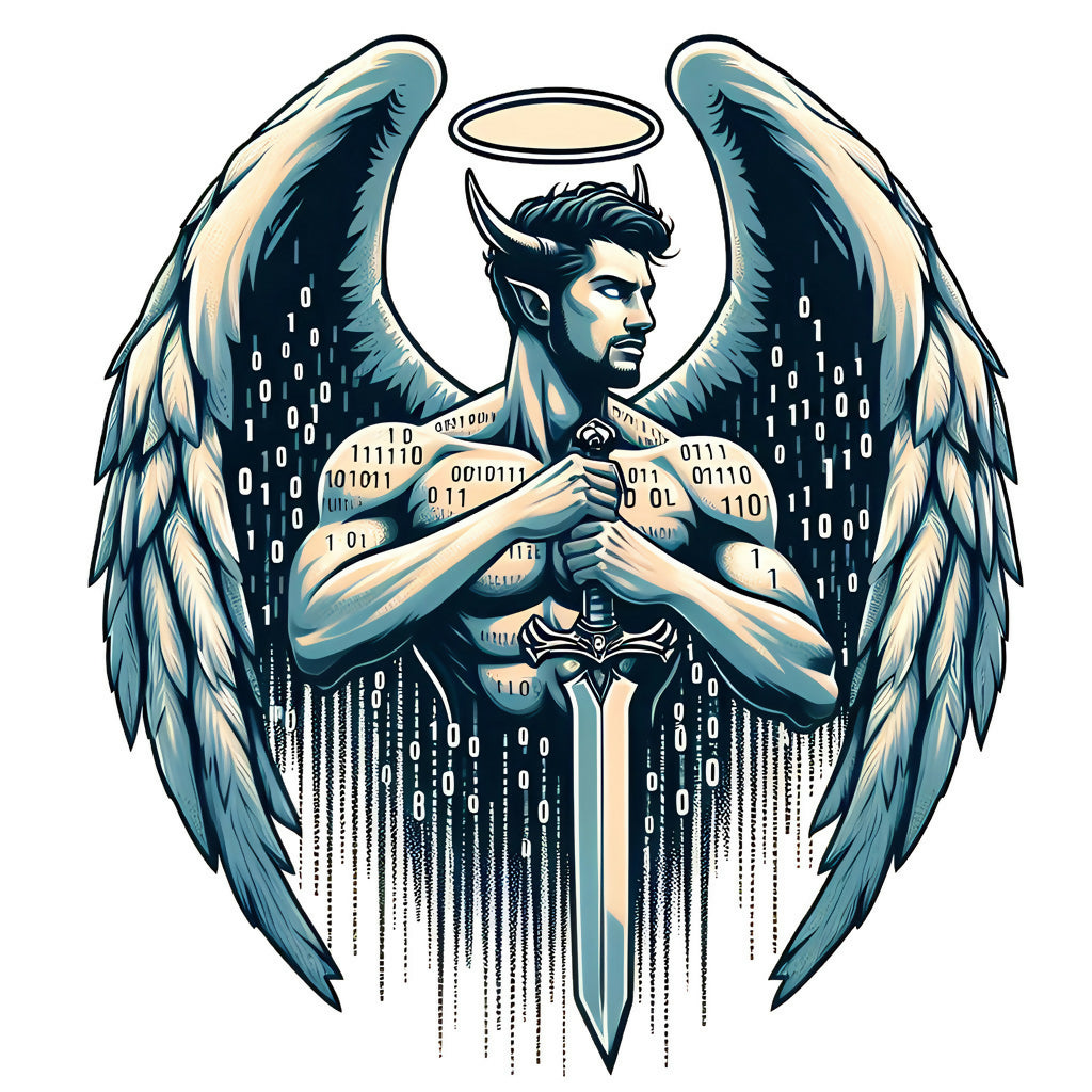 The Cyber Guardian Angel is a mesmerizing fusion of celestial purity and futuristic technology. This AI-generated artwork portrays a majestic angel with expansive, intricately detailed wings and a radiant halo, symbolizing protection and enlightenment. The angel’s body is adorned with cascading binary code, illustrating the convergence of spirituality and digital evolution. Holding a powerful sword, this ethereal being embodies strength and vigilance. Set against a backdrop of flowing digital patterns, this piece offers a striking visual that resonates with both art lovers and tech enthusiasts alike.