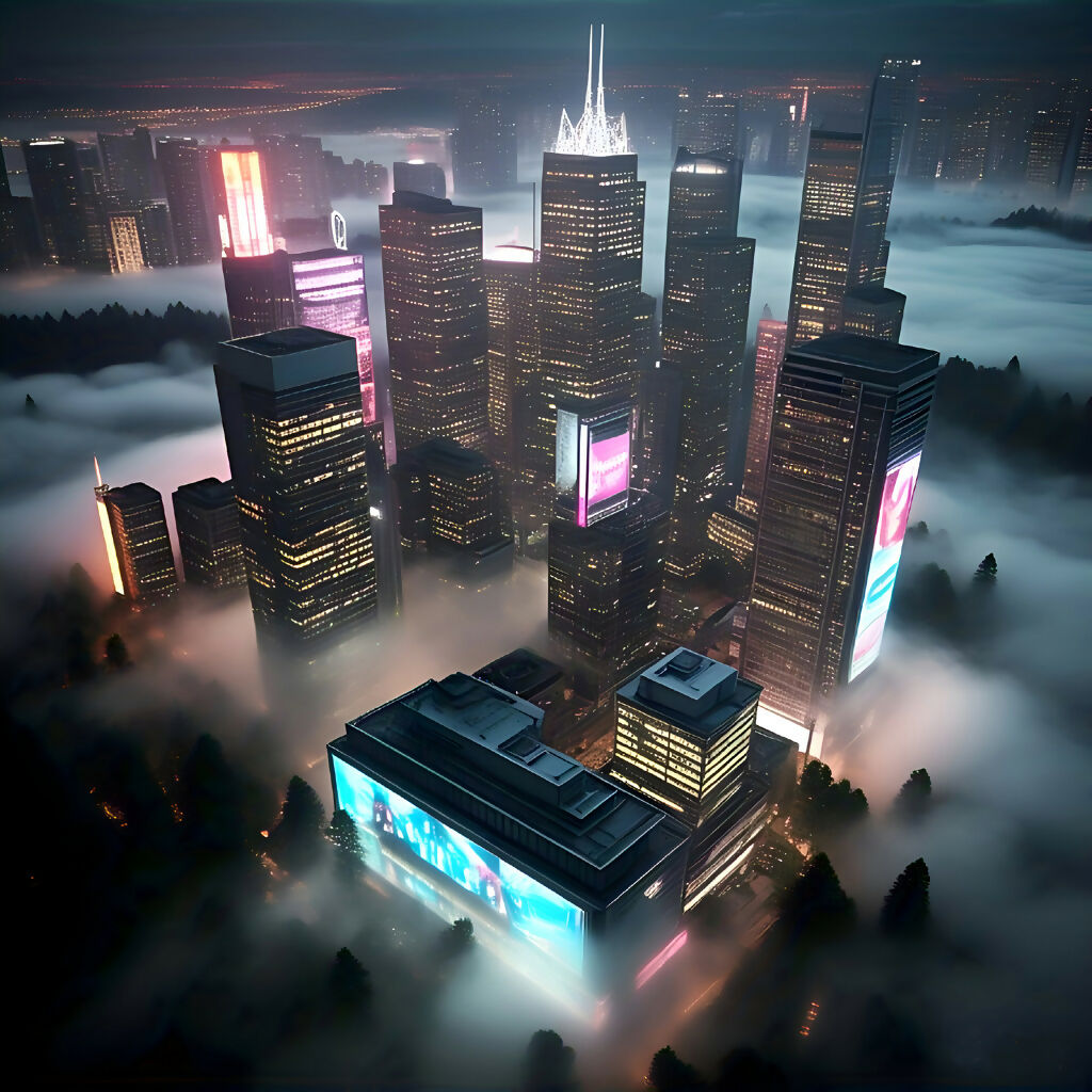 Cyber Mist Metropolis – Futuristic Urban Skyline