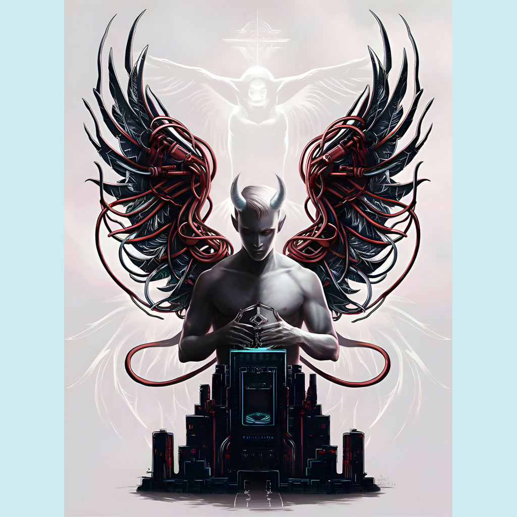 Step into a dystopian future with the Cybernetic Angel of Darkness, an electrifying fusion of dark fantasy and cyberpunk aesthetics. This AI-generated masterpiece showcases a mechanical-winged entity, adorned with intricate red and black cables, embodying the fusion of organic and synthetic existence. Standing against a futuristic cityscape, this powerful figure exudes an aura of mystery, dominance, and otherworldly energy. Perfect for lovers of futuristic sci-fi, dark fantasy, and cybernetic art, this illustration captivates with its bold colors, detailed design, and haunting presence.