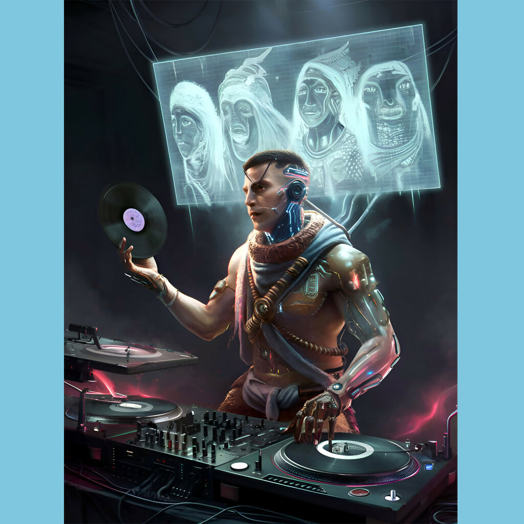 tep into the electrifying future of music with Cybernetic DJ: The Future of Sound! This striking AI-generated artwork features a futuristic DJ equipped with state-of-the-art cybernetic enhancements, seamlessly blending technology with music mastery. The high-tech turntable setup, glowing neon accents, and robotic precision create a mesmerizing cyberpunk atmosphere. Ideal for electronic music enthusiasts, sci-fi lovers, and digital art collectors looking for a piece that resonates with futuristic creativity.