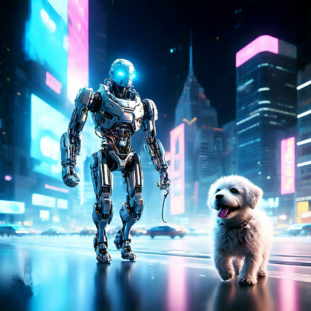 Step into the future with CyberSentinel Pooch, the ultimate AI-driven guardian for your pet. Designed for modern city dwellers and sci-fi lovers, this robotic protector boasts a sleek, metallic form, luminous blue optics, and advanced navigation sensors to monitor and safeguard your furry companion. Whether weaving through neon-drenched streets or standing watch at home, CyberSentinel Pooch fuses cutting-edge technology with devoted companionship.