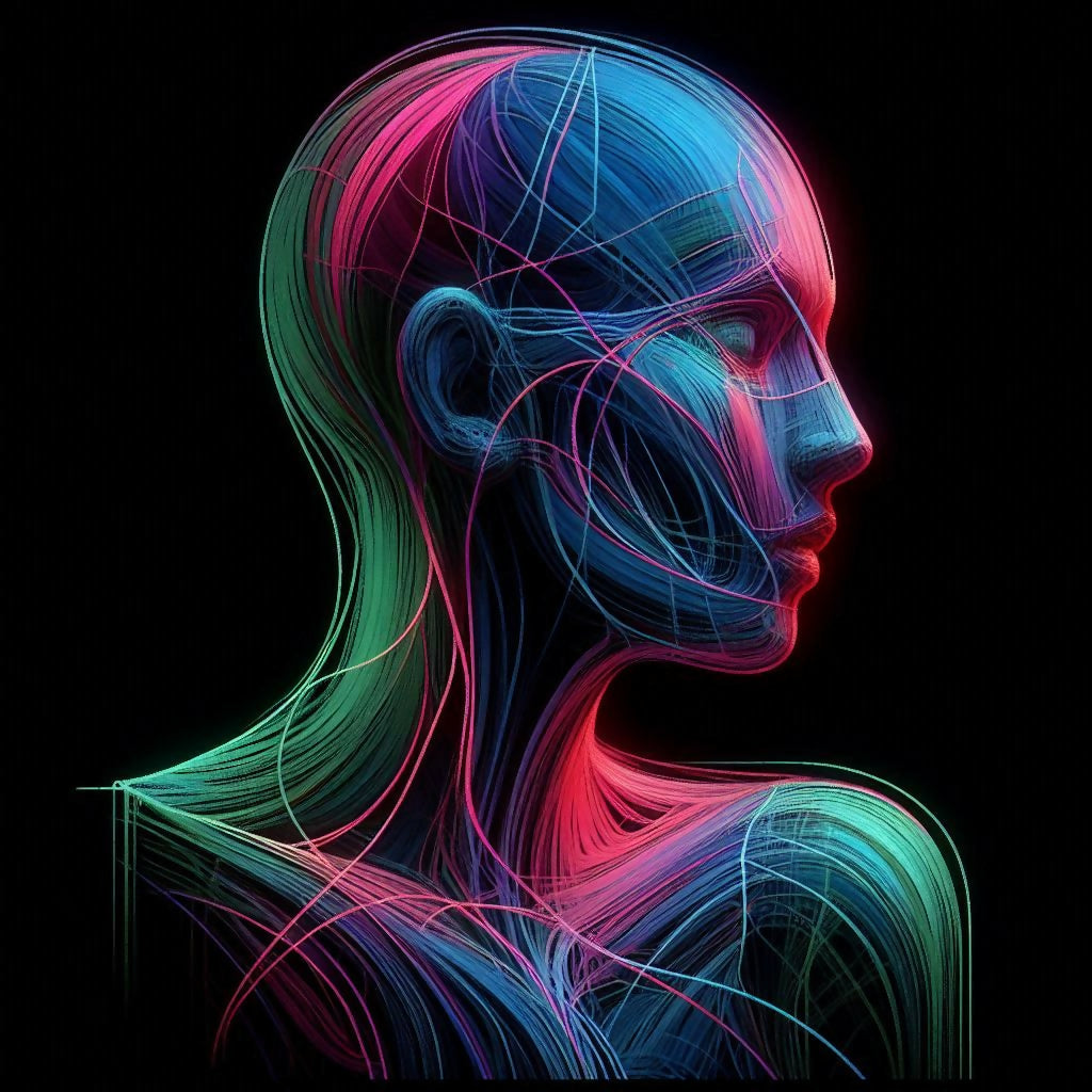 "This piece embodies the fusion of human and machine, blending the boundaries between biology and technology. By harnessing the power of AI-driven creativity, I aim to explore the intricate connections between the human body and the digital realm, inviting viewers to contemplate the evolving relationship between humans and technology."