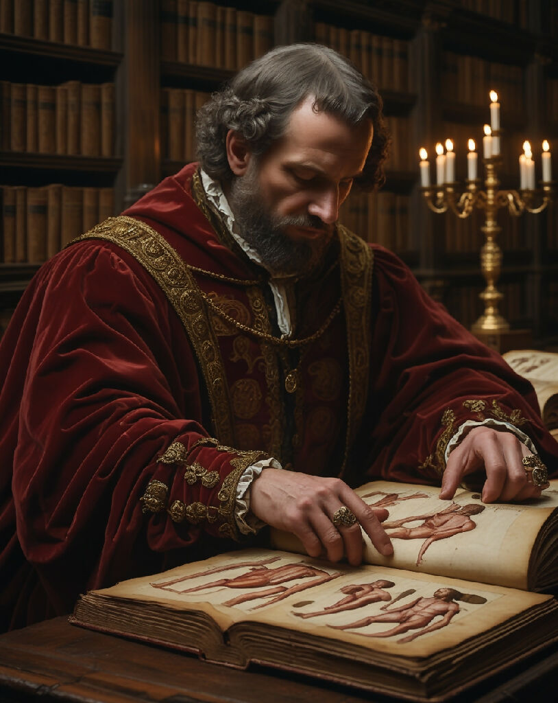 A scholarly figure in Renaissance robes, rendered with Leonardo da Vinci’s sfumato technique and Van Gogh’s textured brushstrokes. This AI-generated masterpiece blends intellectual elegance with chaotic creativity, perfect for libraries, offices, or academia-themed spaces.