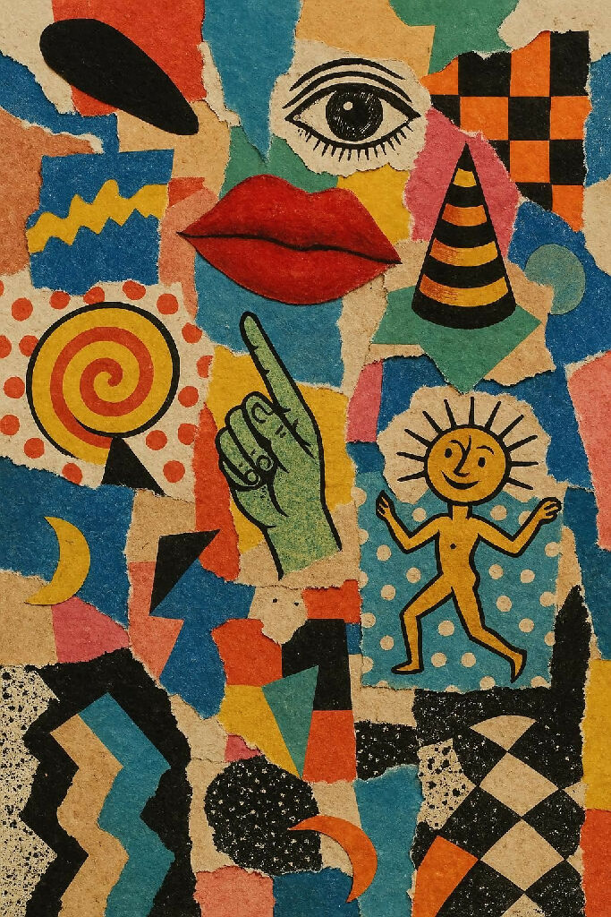 "Dadaist Daydream" is a vibrant, surrealist collage that blends vintage textures with playful, hand-drawn symbols. From the piercing watchful eye and bold red lips to the whimsical sun-child and geometric patterns, this piece celebrates the Dada spirit of chance and senseless joy. A perfect statement piece for lovers of avant-garde art, maximalist decor, and the beautifully bizarre.
