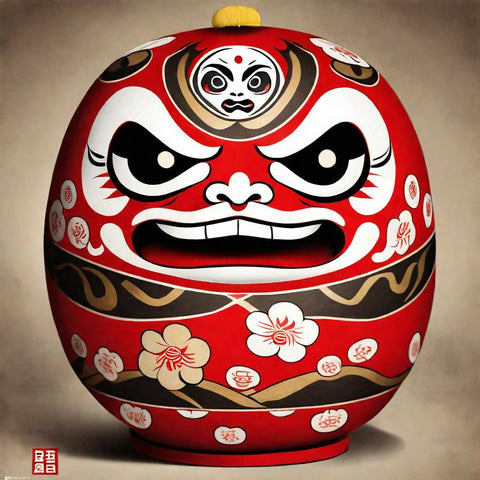 A Daruma doll is a hollow, round Japanese traditional doll modeled after Bodhidharma, the founder of the Zen sect of Buddhism. These dolls are typically red and considered a symbol of perseverance and good luck.