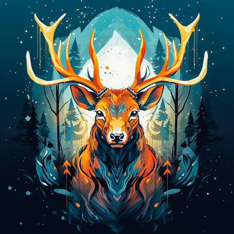 This captivating artwork focuses on the majestic head of a deer, capturing its serene yet powerful presence. The deer's expressive eyes, framed by its elegant antlers, draw the viewer into a world of natural beauty and mystery. Fine details in the fur and the graceful curvature of the antlers are accentuated, highlighting the deer's noble and gentle essence. Set against a soft, natural background, this piece combines realism with a touch of artistic flair, making it perfect for adding a sense of calm and majesty to any space.