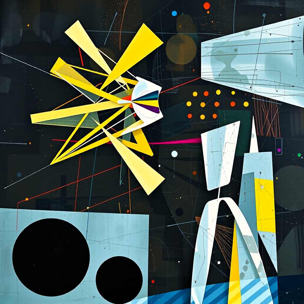 It shows how the arrangement and interaction of these shapes create a visual narrative about defining moments.