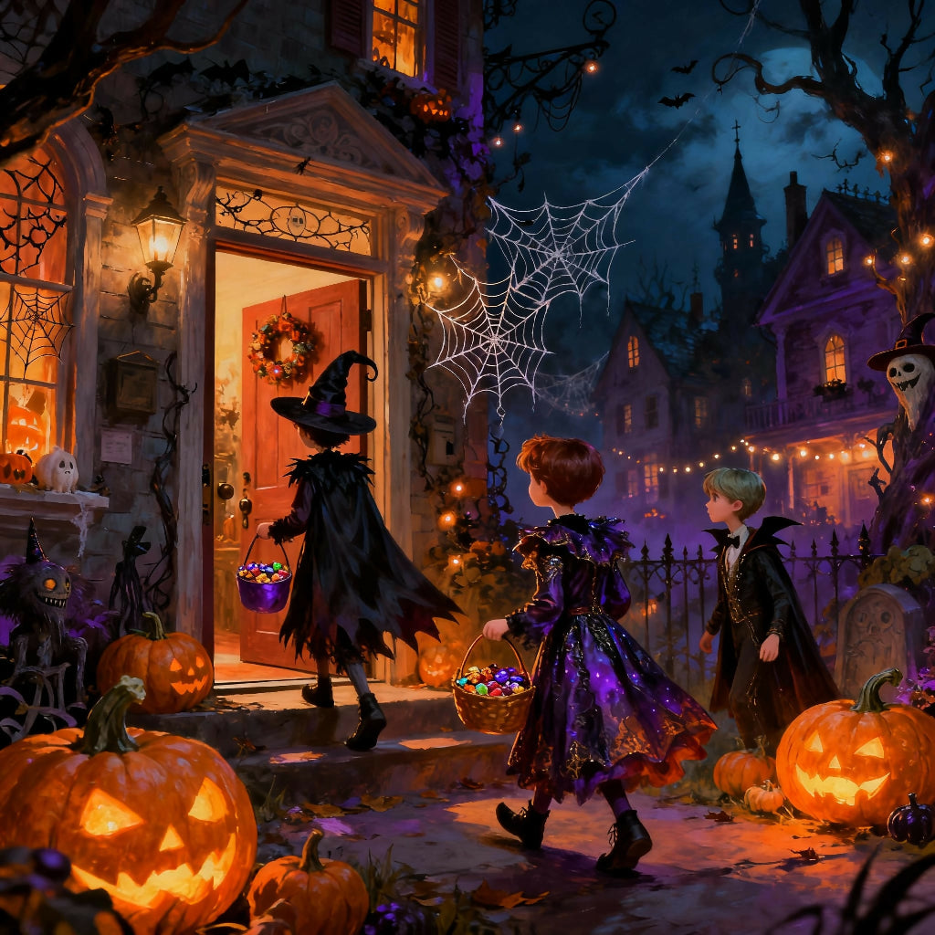 Des enfants viennent chercher des bonbons...Des bonbons ou un sort !!