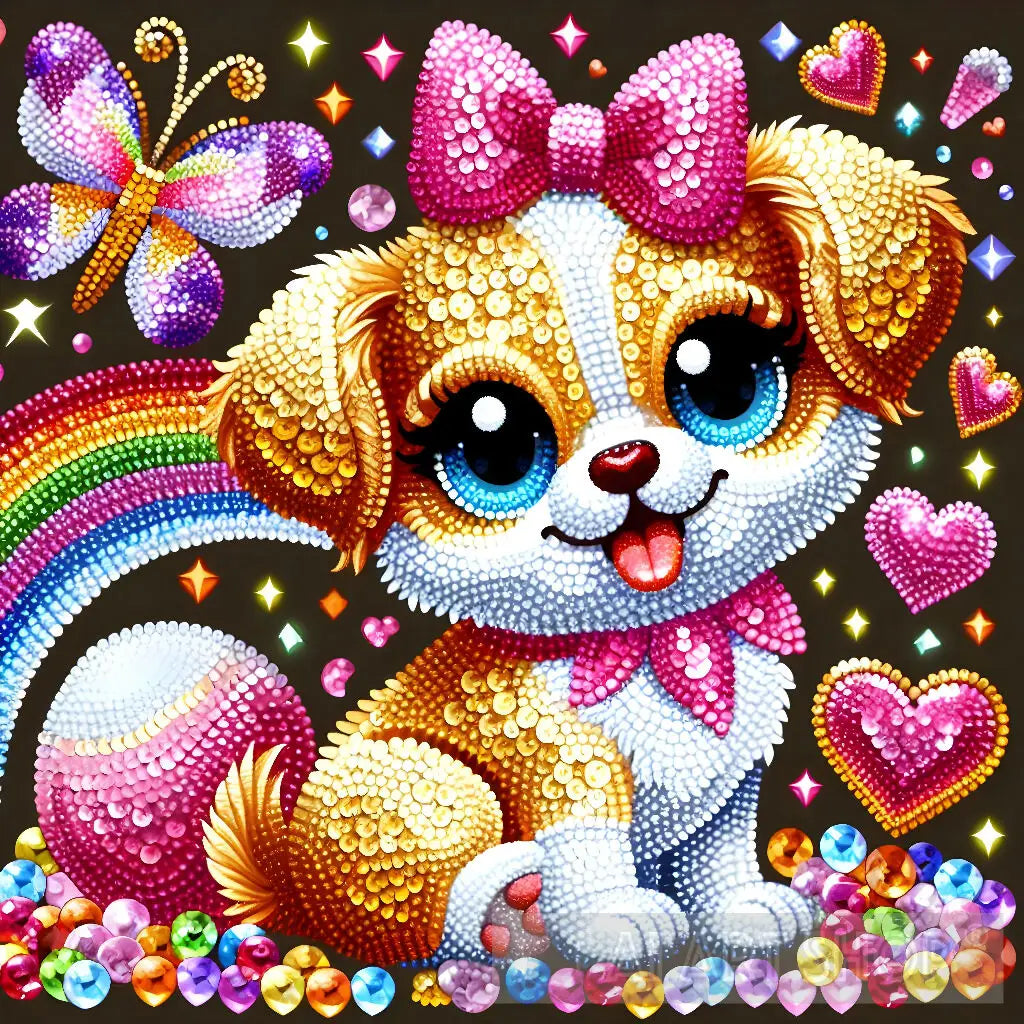 The "Diamond Painting Of A Puppy" wall painting captures the heartwarming innocence and playfulness of a delightful puppy in exquisite detail. This artwork, created using the diamond painting technique, features a charming canine companion depicted amidst a backdrop of colorful gem-like hues.