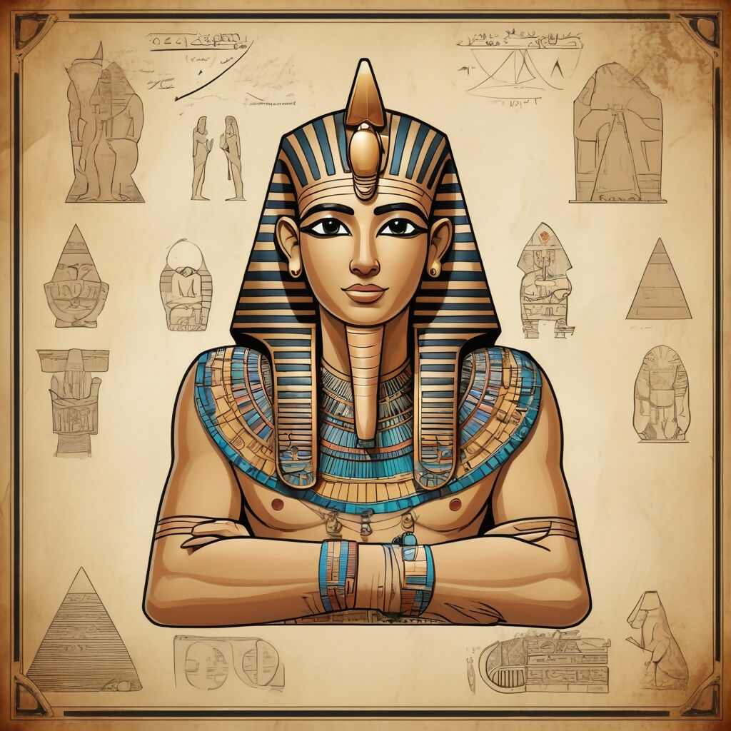 Dibuja una plantilla de papiro antiguo con motivos y símbolos del Antiguo Egipto de los faraones