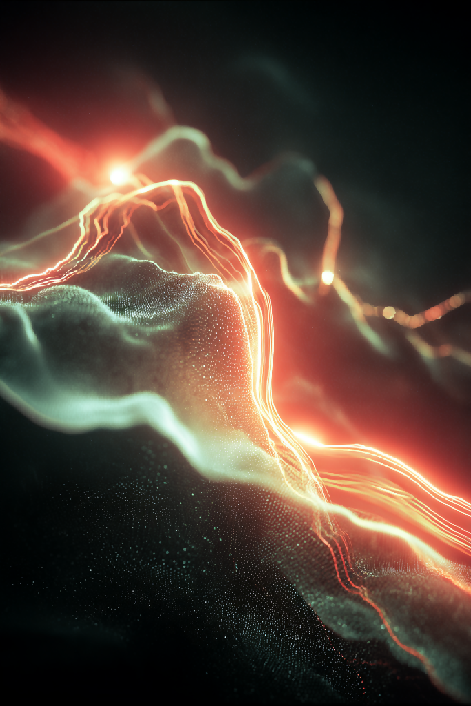A series of six abstract compositions exploring the flow of energy through digital landscapes. Undulating, translucent forms intertwine like glowing filaments, creating scenes that evoke motion, vibration, and depth. Each piece offers a glimpse into an intangible universe where light and color become visual language.
