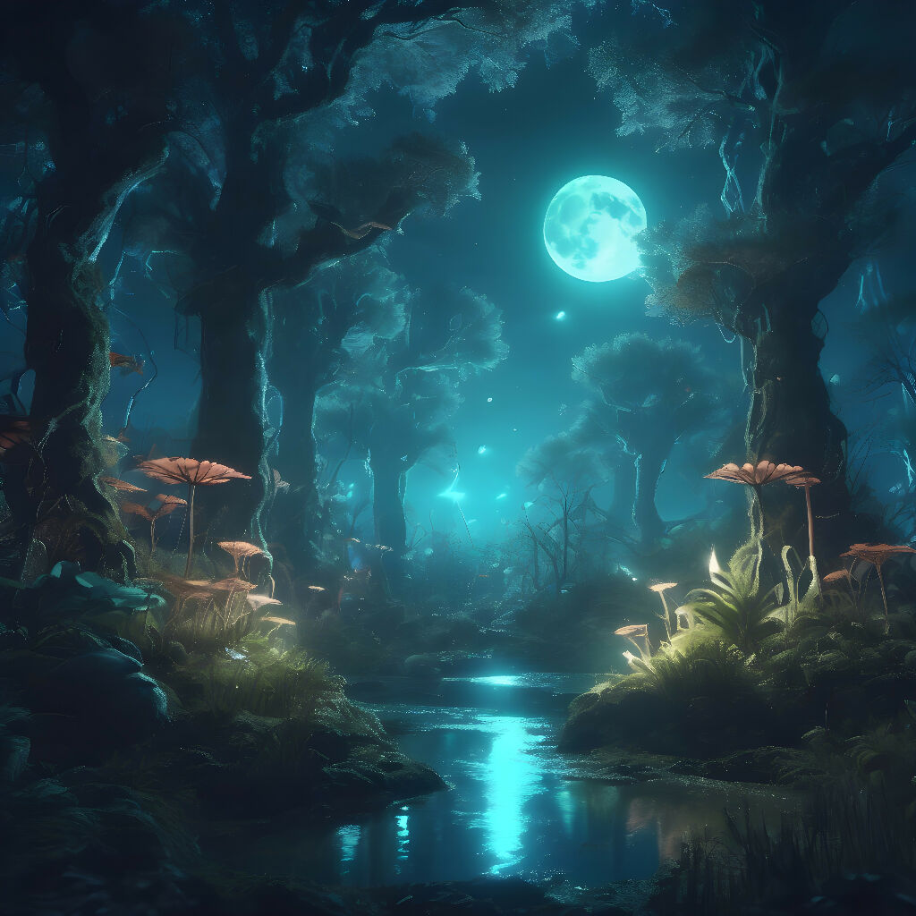 The image depicts a serene stream flowing through a lush forest, surrounded by trees and vibrant flowers. The natural setting showcases the beauty of wildlife and greenery, creating a peaceful atmosphere. It embodies the essence of nature with elements like water and flora harmoniously coexisting.