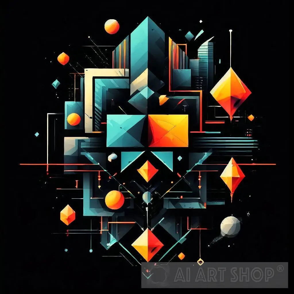 This abstract AI artwork is a symphony of geometry and light, where vibrant shapes and luminous lines converge against a nocturnal backdrop. It’s a digital tapestry woven with spectral decomposition, each neon shape a note in an algebraic melody.