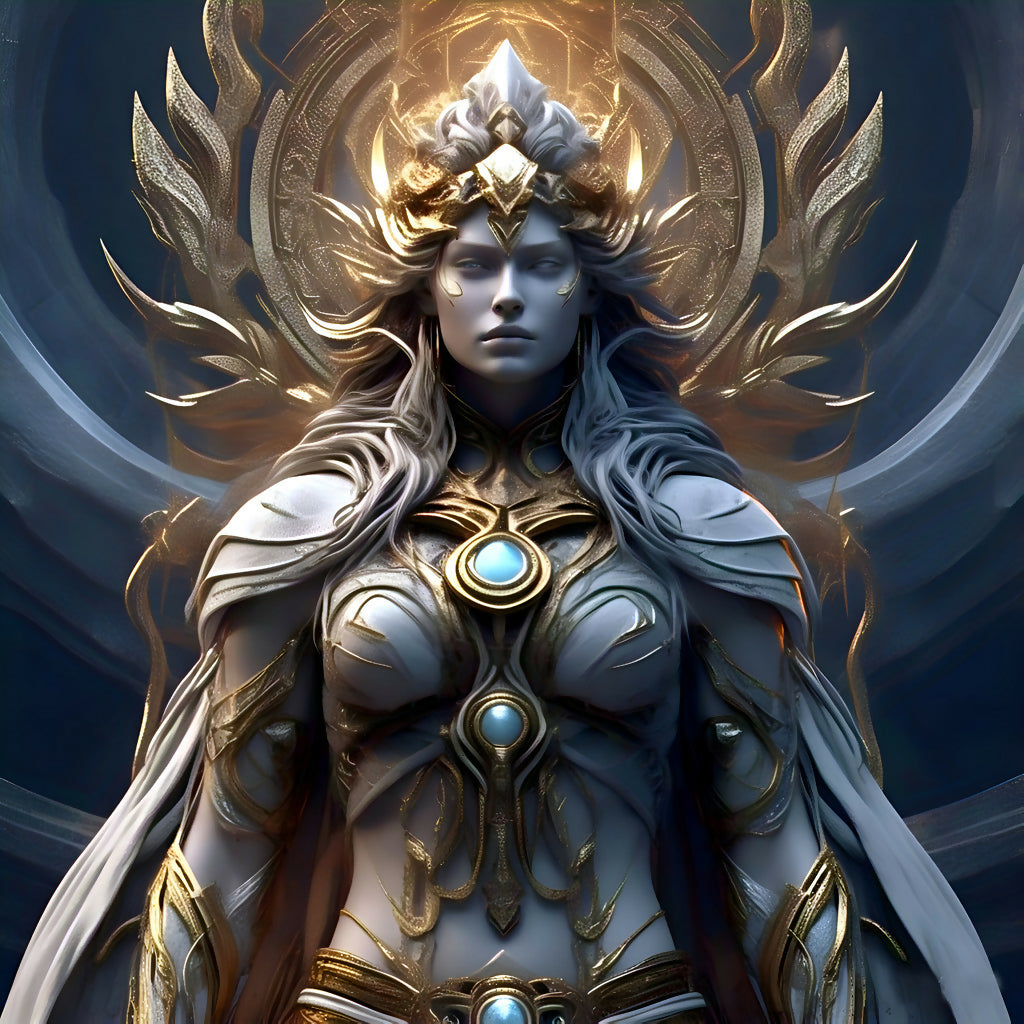 Step into a realm of mysticism and myth with Divine Guardian, a visually striking AI-generated portrait that fuses celestial elegance with surreal imagination. This artwork features an ethereal warrior adorned in intricately designed armor with glowing sapphire accents, framed by a radiant halo and heavenly motifs. The surreal composition evokes a sense of divine protection and cosmic grandeur, making it a captivating addition to any fantasy-themed collection. The blend of soft lighting and spiritual symbolism enhances its dreamlike quality, appealing to collectors and admirers of surreal visionary art.