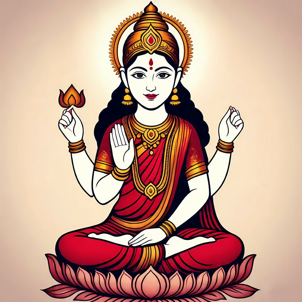 Step into a realm of divine serenity with Divine Lotus Grace, a radiant AI-generated portrait of Goddess Lakshmi seated atop a blooming lotus. Her four arms extend blessings, purity, and spiritual abundance, while her ornate jewelry and red sari shimmer with celestial elegance. This artwork captures the timeless essence of prosperity and peace, reimagined through modern digital artistry. Inspired by ancient symbolism and infused with contemporary vibrance, this piece invites viewers to reflect on inner wealth and harmony. Ideal for spiritual décor, meditation spaces, or cultural storytelling.