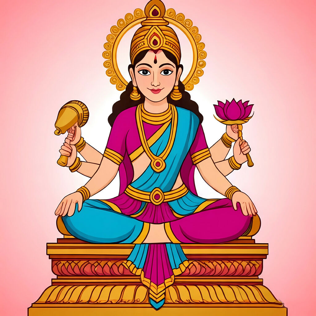 Immerse yourself in the luminous presence of Divine Radiance Hindu Goddess Blessing Art, a spiritually charged AI-generated masterpiece. This artwork portrays a revered Hindu goddess seated in serene meditation, her four arms gracefully holding sacred symbols—a lotus and conch—while her lower hands offer blessings and peace. Adorned in vibrant pink, blue, and gold attire with intricate jewelry and a glowing halo, she radiates divine energy and cultural richness.Inspired by centuries of devotional iconography, this piece reimagines the goddess as a beacon of prosperity, wisdom, and purity. The AI artist infused traditional symbolism with expressive color palettes to evoke emotional depth and spiritual serenity. Whether you're drawn to Eastern spirituality or the power of feminine divinity, this artwork invites viewers into a sacred moment of grace and transcendence.