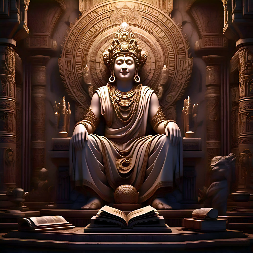 Step into a realm of majestic mystery with Divine Throne of Insight, a surreal AI-generated masterpiece that marries opulence with symbolism. This striking digital portrait showcases a dignified figure seated upon a richly adorned throne, encircled by ancient architectural motifs and subtle spiritual iconography. Open books flank the scene, symbolizing wisdom, while gilded embellishments amplify the grandeur. Designed to captivate lovers of surreal art and digital royalty, this piece evokes timeless elegance through the lens of artificial intelligence. Ideal for collectors who appreciate thought-provoking compositions and elevated aesthetic storytelling.