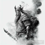 Dramatic viking out of the smoking ruins