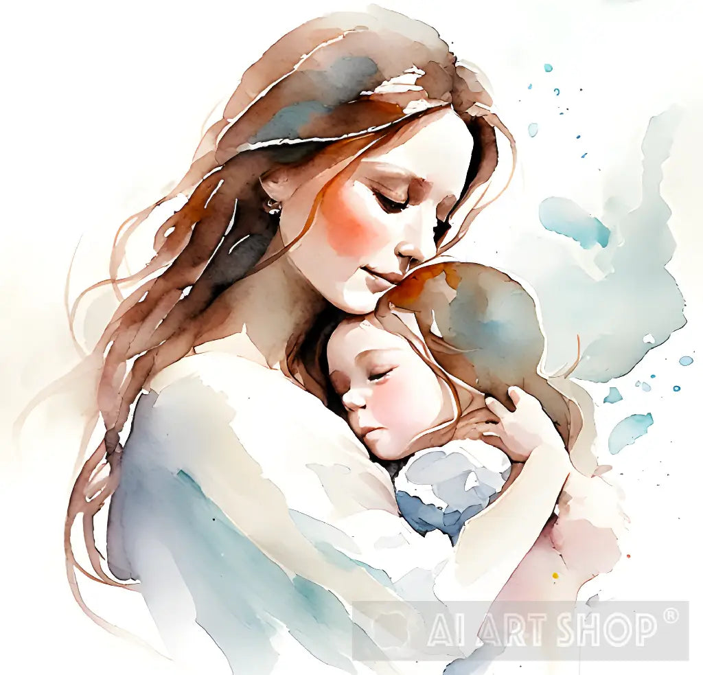 Drawing of a beautiful woman hugging her little daughter, very delicate and detailed drawing, hand drawn vector concept art with white background