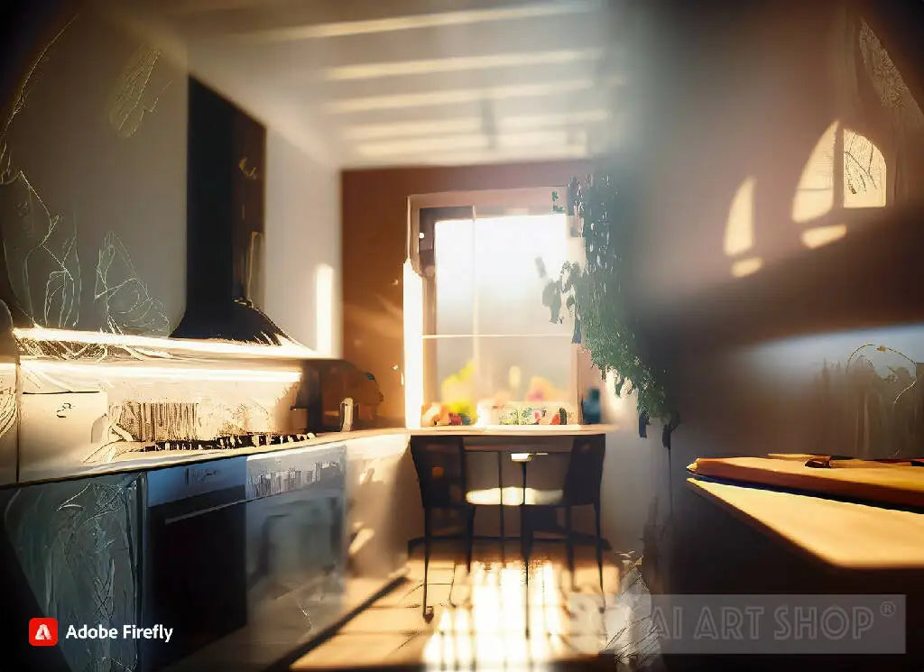 dream kitchen in the morning sun with a light painting