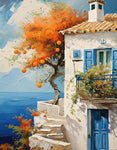 Beautiful house in Greece with a sea view and an orange tree on the balcony
