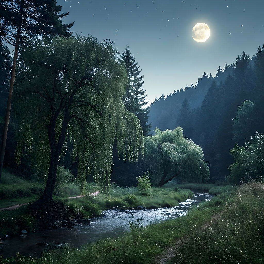 Tranquil Moonlit River Night Landscape Digital Art Print - Serene Forest Scene for Calming Wall Decor.  Escape into the peace of nature with this breathtaking moonlit river night landscape digital art print. Featuring a serene forest scene bathed in soft moonlight and a calming river, this dreamy nightscape artwork brings a sense of tranquility and calm to any home or office. This printable wall art is an instant digital download, making it an easy and affordable way to create relaxing wall decor. Perfect for nature lovers, those seeking peaceful art, or anyone wanting to add a touch of nighttime beauty to their space.