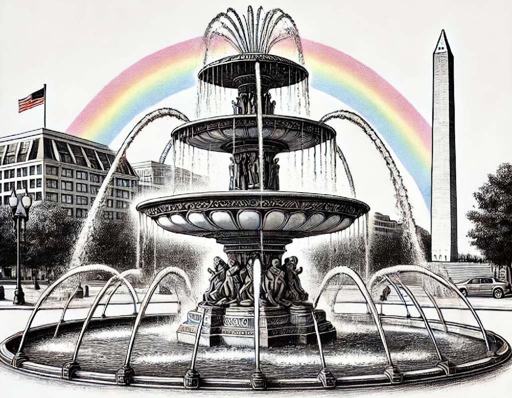 pencil sketch of Dupont Circle and surrounding dc landmarks