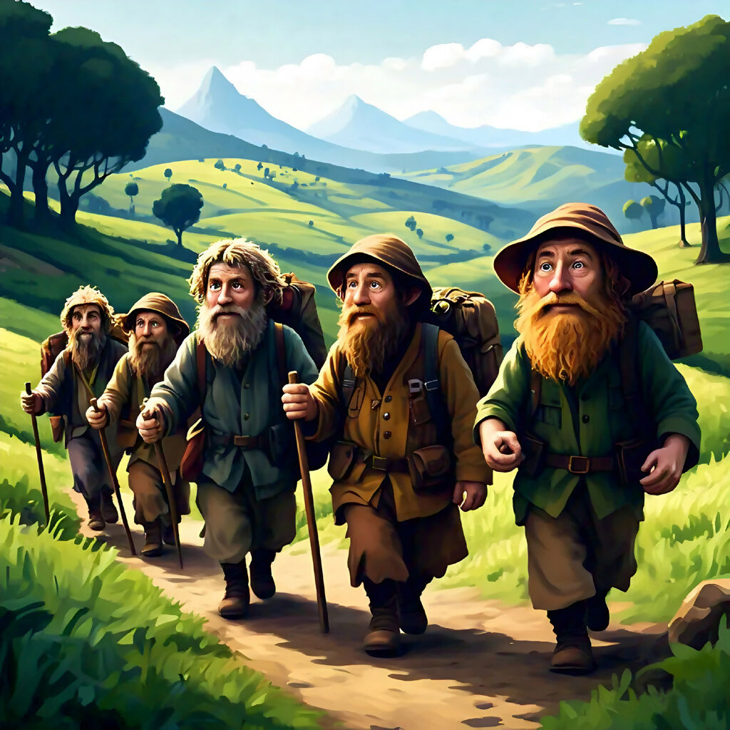 Embark on a journey through enchanted hills with “Dwarven Quest: The Emerald Trail”, a captivating AI-generated landscape artwork that blends fantasy lore with natural beauty. This piece portrays five determined dwarves hiking through a verdant valley, their medieval garb and heavy packs hinting at a long expedition filled with mystery and camaraderie. Inspired by classic fantasy tales and RPG aesthetics, the scene evokes the spirit of adventure, resilience, and brotherhood. Ideal for fans of Tolkien-esque worlds, tabletop gaming, or nature-infused storytelling visuals, this artwork brings a touch of magic to any space.