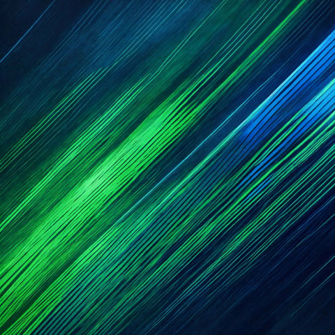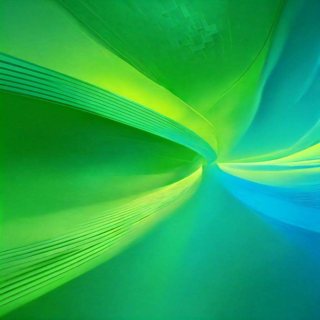 - A dynamic image featuring line swoosh forms in sharp focus, with green and blue light moving in different directions. The background is a vivid green, creating a sense of motion and energy. The composition emphasizes contrast and directionality, with the fluid lines adding to the sense of speed and flow.