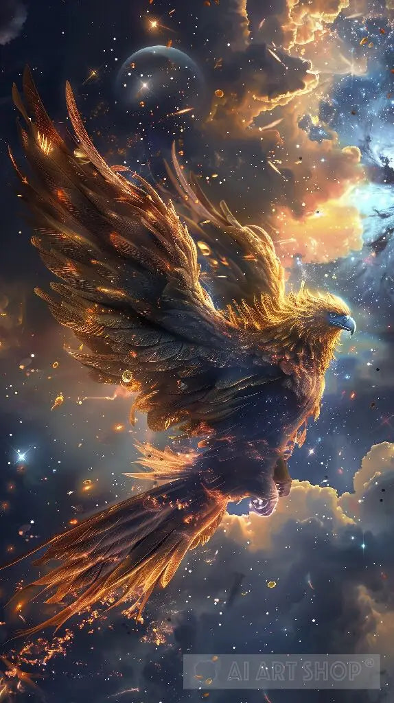"Stellar Scout" transcends a simple depiction of an eagle. It embodies the spirit of exploration, the yearning to push beyond the boundaries of the known world. This majestic creature, soaring through the cosmos, becomes a symbol of humanity's own desire to understand the universe's mysteries. The artwork leaves the viewer with a sense of wonder, pondering the possibilities of life beyond our planet and the potential for intelligent creatures to explore the vastness of space.