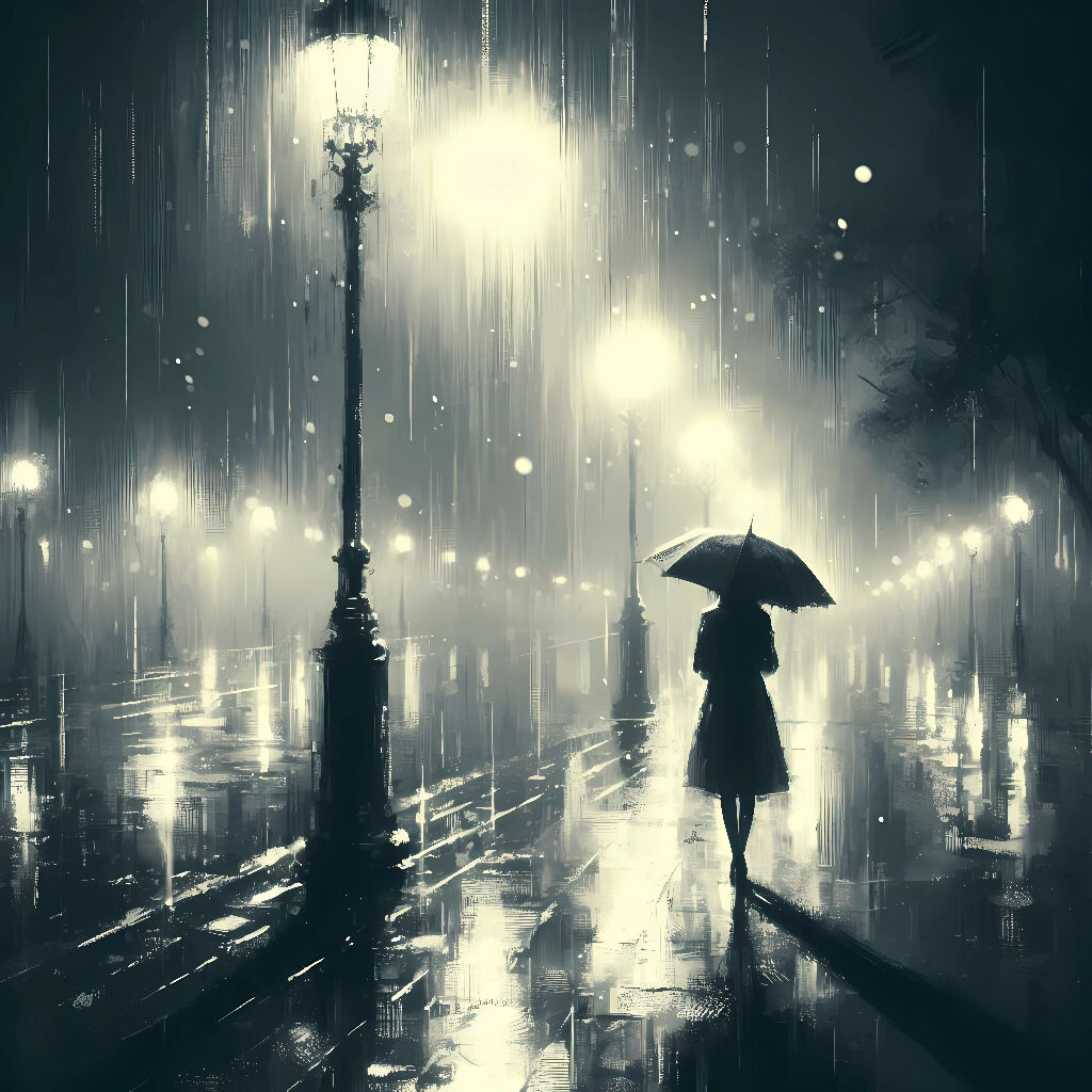 “Echoes in the Rain” is a hauntingly elegant, hand-painted style digital artwork capturing a solitary woman walking under a rain-soaked sky at midnight. Bathed in grayscale with soft highlights from vintage streetlamps, the image evokes a sense of quiet reflection, nostalgia, and loneliness. Each drop and shadow is painted with care, mimicking the finesse of traditional oils. Ideal for modern interiors, fine art collectors, or anyone who finds beauty in stillness and melancholy.