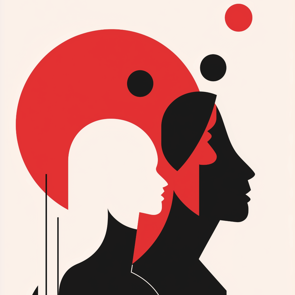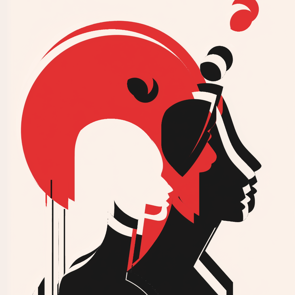 Each portrait explores the harmony between individuality and unity through bold contrast and circular tension. Red, violet, and black play off each other like visual notes in a silent symphony.