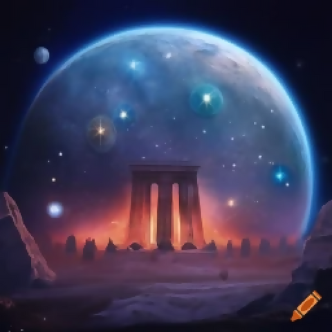 Discover the grandeur of ancient civilizations that once thrived among the stars. This mesmerizing artwork showcases intricate monuments and stunning architecture, offering a glimpse into the mysterious and advanced cultures that shaped the universe's history