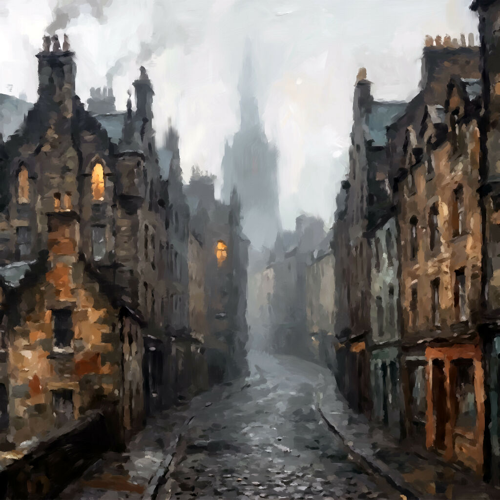 Edinburgh Old Town Mist is a high-end contemporary work, blending advanced AI neural processing with expert digital artistry. It is an original piece from the City AI collection at AI Art Shop.