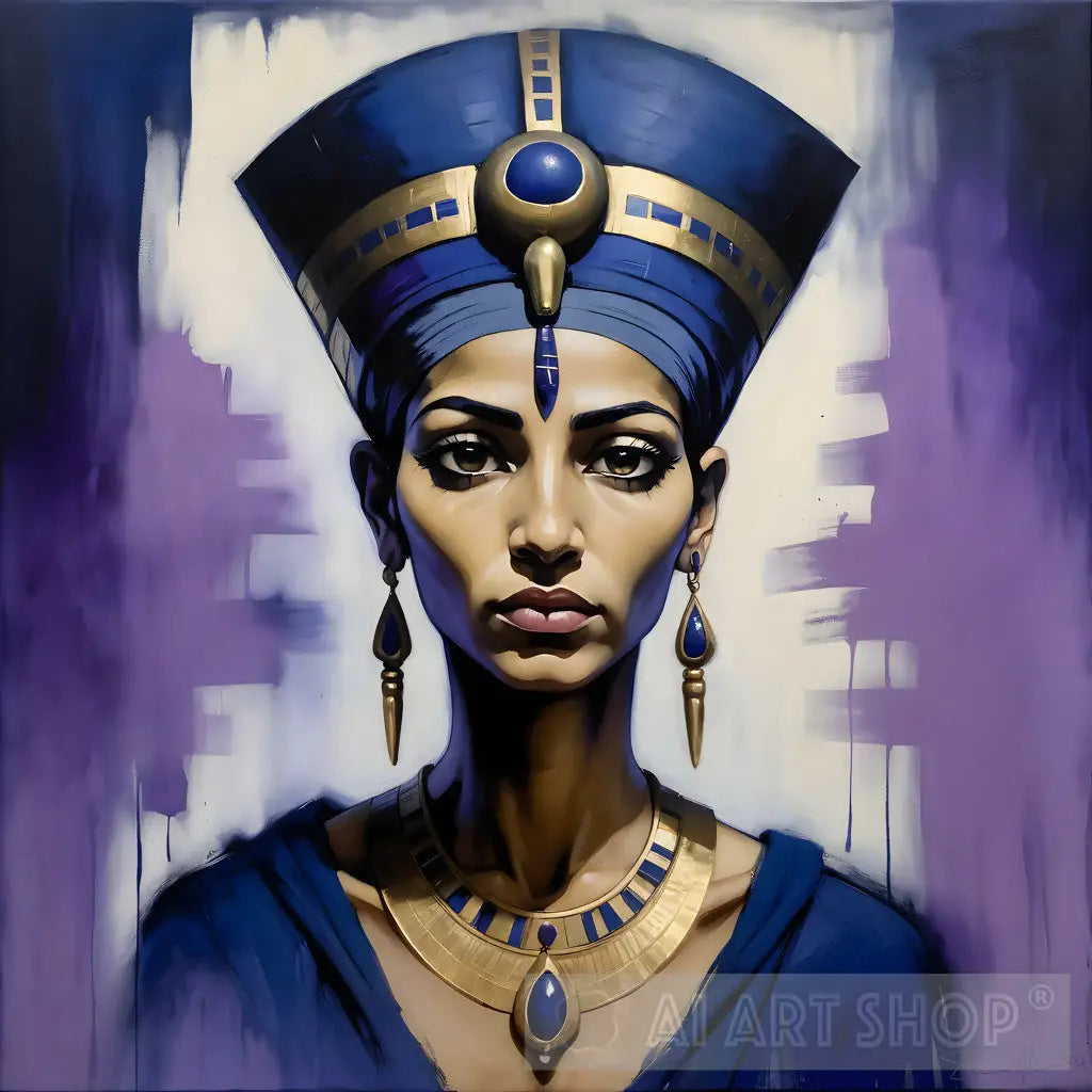 This Egyptian Woman resembles a goddess of old. She exudes power, has beautiful decorations on her clothes and she looks a bit like a Goddess. I worked with different colors than normally seen on Egyptian (AI) paintings. I chose purple and blue because those two colors go well together.