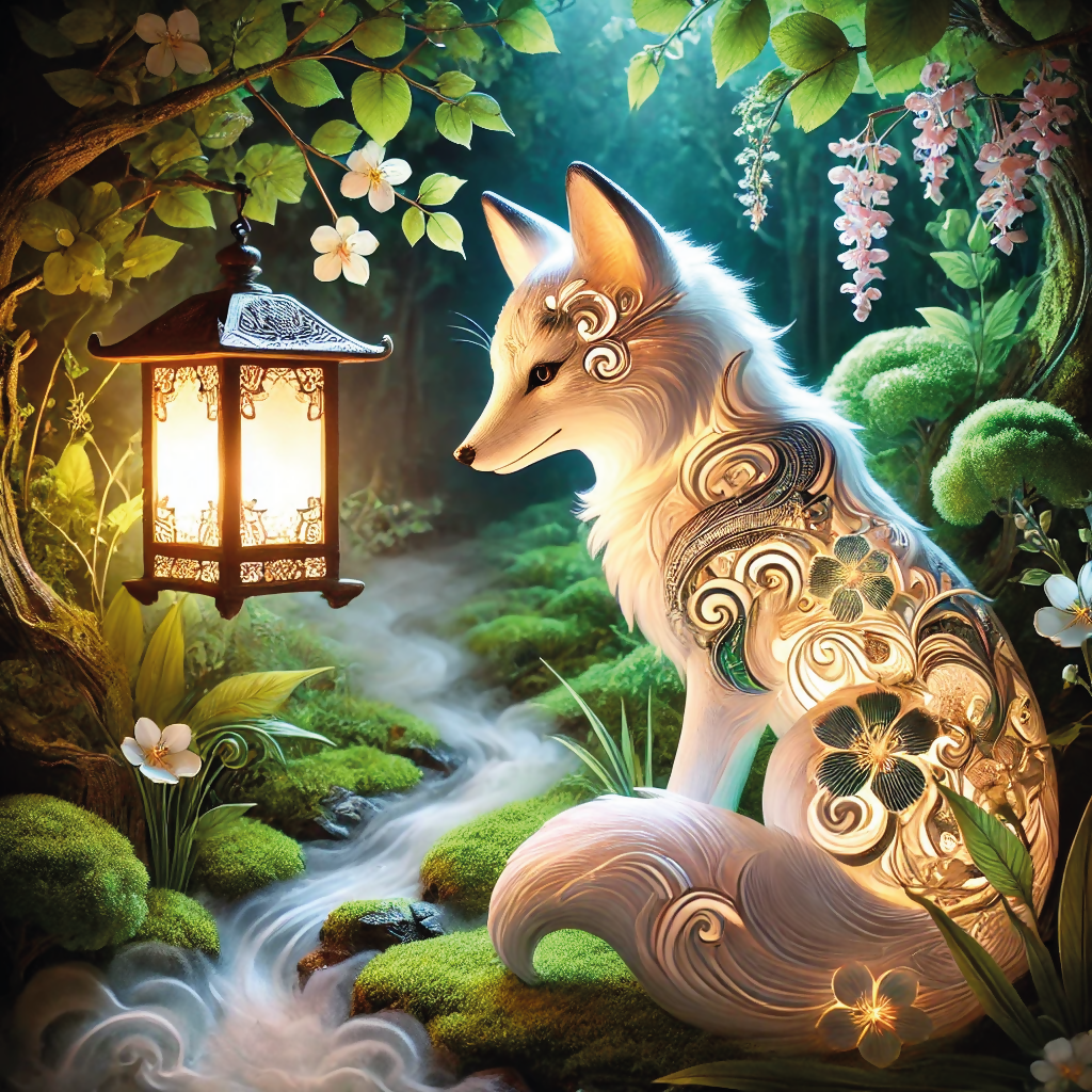 Step into an enchanting world where a graceful fox rests amid a field of lavender, surrounded by vintage floral patterns. The fox's fiery orange fur contrasts beautifully with the soft purples and creams of the flowers, creating a nostalgic and dreamlike scene. Ideal for fans of whimsical and nature-inspired designs with a touch of vintage charm.