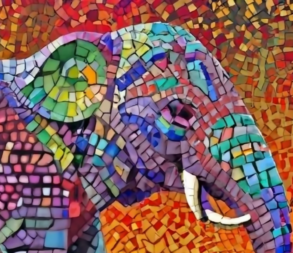 An elephant in a mossaic or tiled art, suitable as a wall art in many different ambience.