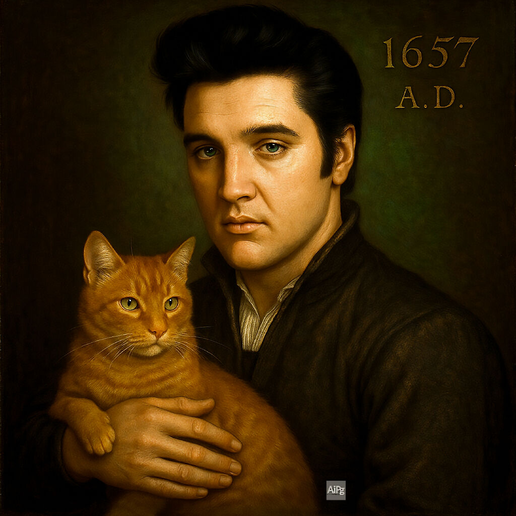 Elvis with Cat, Simple. Portrait. by AiPg 2025