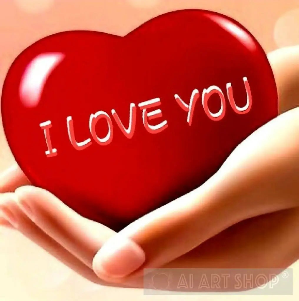 In this artistic masterpiece, the light orange background captivates the eye, appearing at the center of the canvas as a canvas of warm and intimate colors. In this evocative scene, two hands delicately hold a heart, red in color, bearing a simple yet profound message: "I love you."