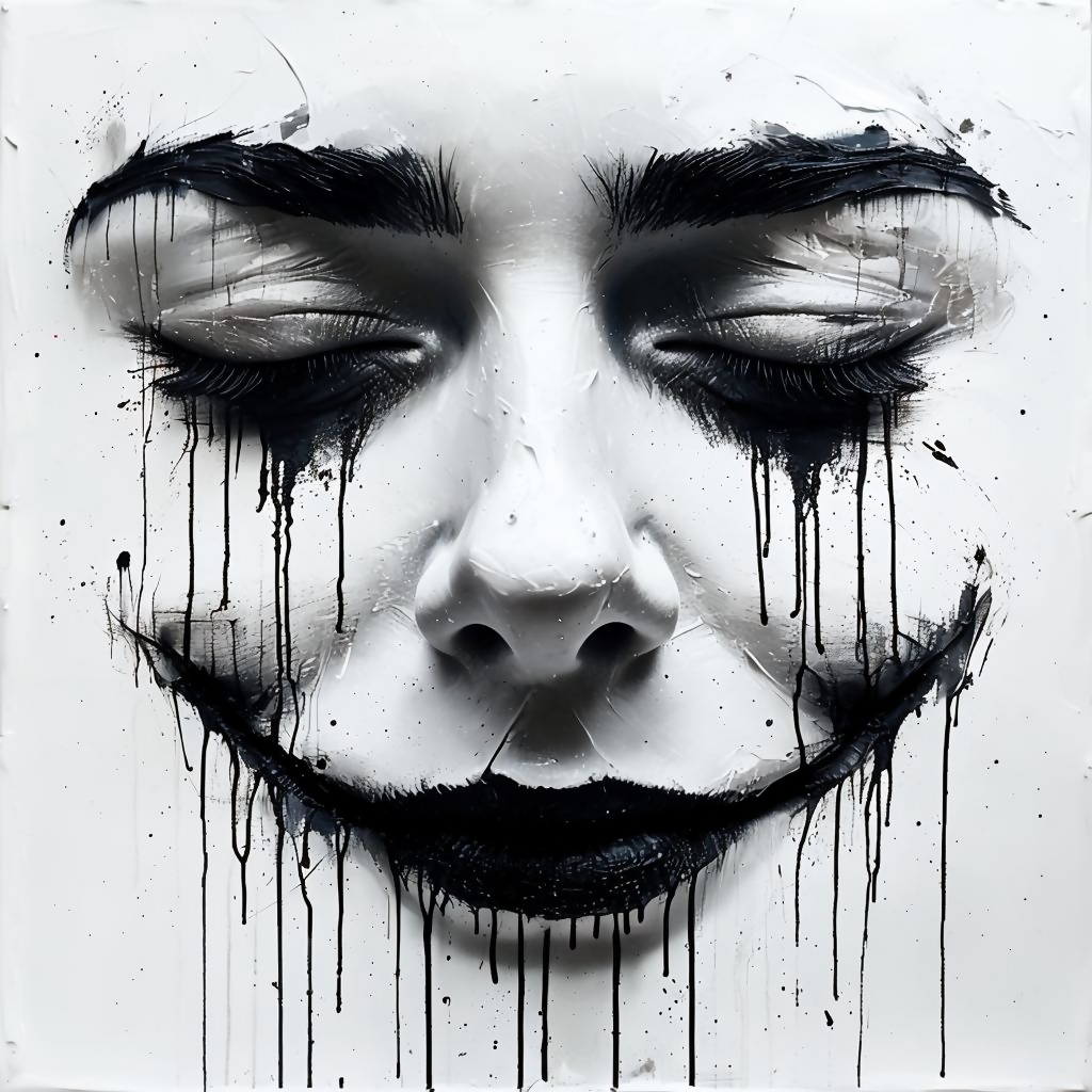 Discover this captivating digital artwork, a powerful abstract expression of human emotion. Featuring a somber face with striking black and white tones, enhanced by bold dripping effects, this piece evokes deep feelings of melancholy and beauty. Perfect for lovers of modern art, minimalist decor, or mixed-media enthusiasts, this digital download is ideal for home or office spaces. Keywords: emotional art, abstract face, black and white art, contemporary digital artwork, modern wall decor.
