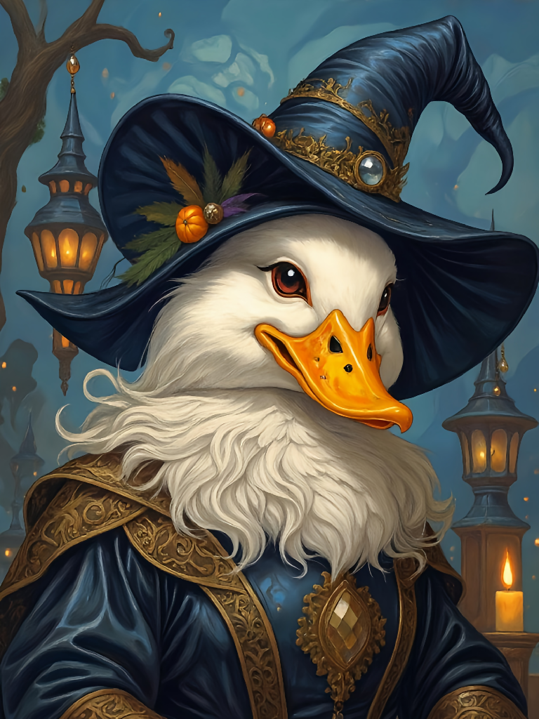 Unleash the magic this Halloween with our Majestic Duck Wizard Digital Art. This one-of-a-kind, high-resolution digital download is the perfect Halloween decoration for your home.