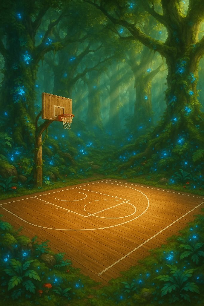 Take your love of basketball to a magical place with this piece of AI art. No doubt that players from the Orlando Magic and Washington Wizards would be welcome to hoop it up here.