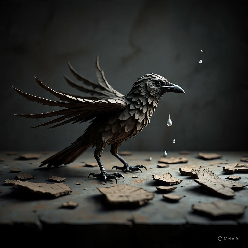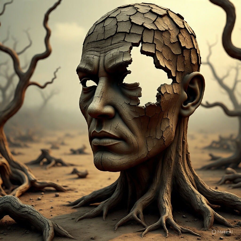 Effect of environment damage brought out through AI art. Damaged fauna and flora and the agony of human, adds to skillful depiction of this subject.
