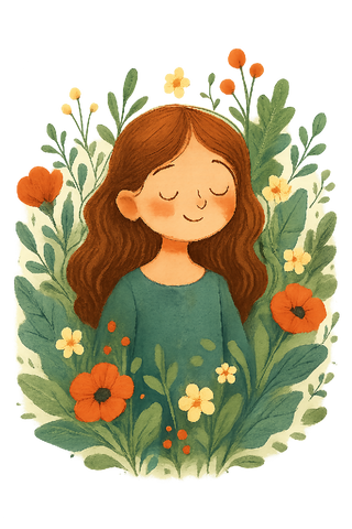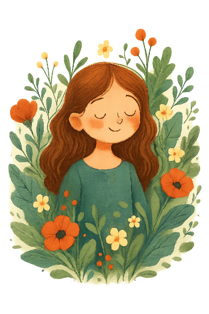 Au cœur d’un jardin fleuri, une jeune fille ferme les yeux dans une sérénité totale, entourée de fleurs éclatantes et de feuillage doux. Ce visuel poétique évoque la paix intérieure, l’harmonie avec la nature et la beauté simple du moment présent. Une ode à la douceur et à l’épanouissement personnel.