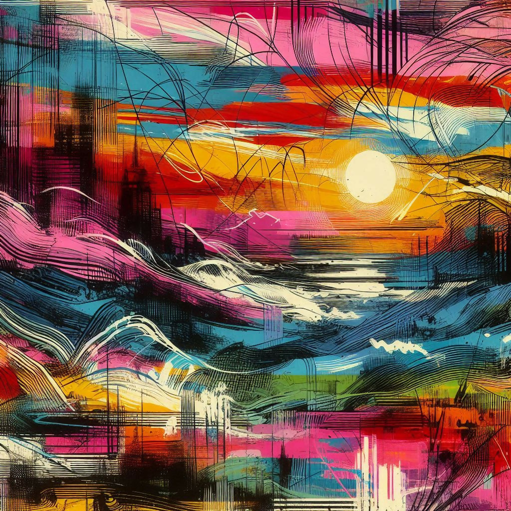 "In 'Ephemeral Horizon,' I blend vibrant sunset hues with chaotic line work to capture the dynamic essence of nature. This piece reflects a shift toward experimental digital techniques, embracing the beauty of impermanence and the emotional intensity of abstract expressionism. It's a celebration of the ever-changing world around us."