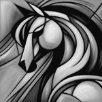 A dance of dark lines against light captures the noble spirit of a horse in this captivating abstract portrayal.