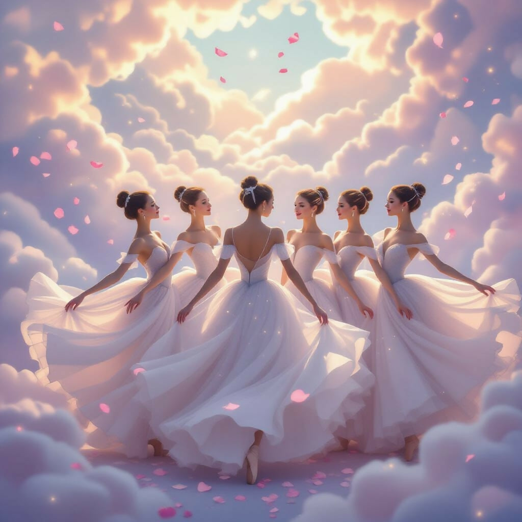 Highly detailed, realistic textures, cinematic composition, visually stunning, ethereal elegance, natural choreography variety.